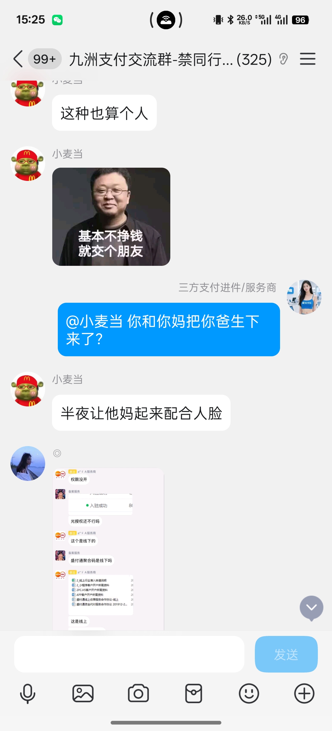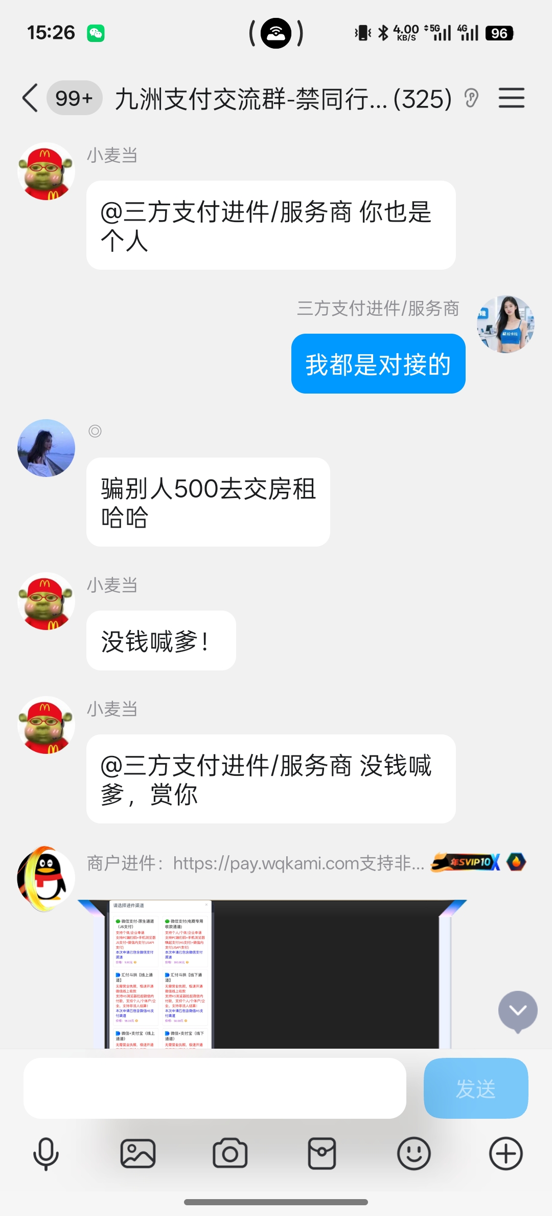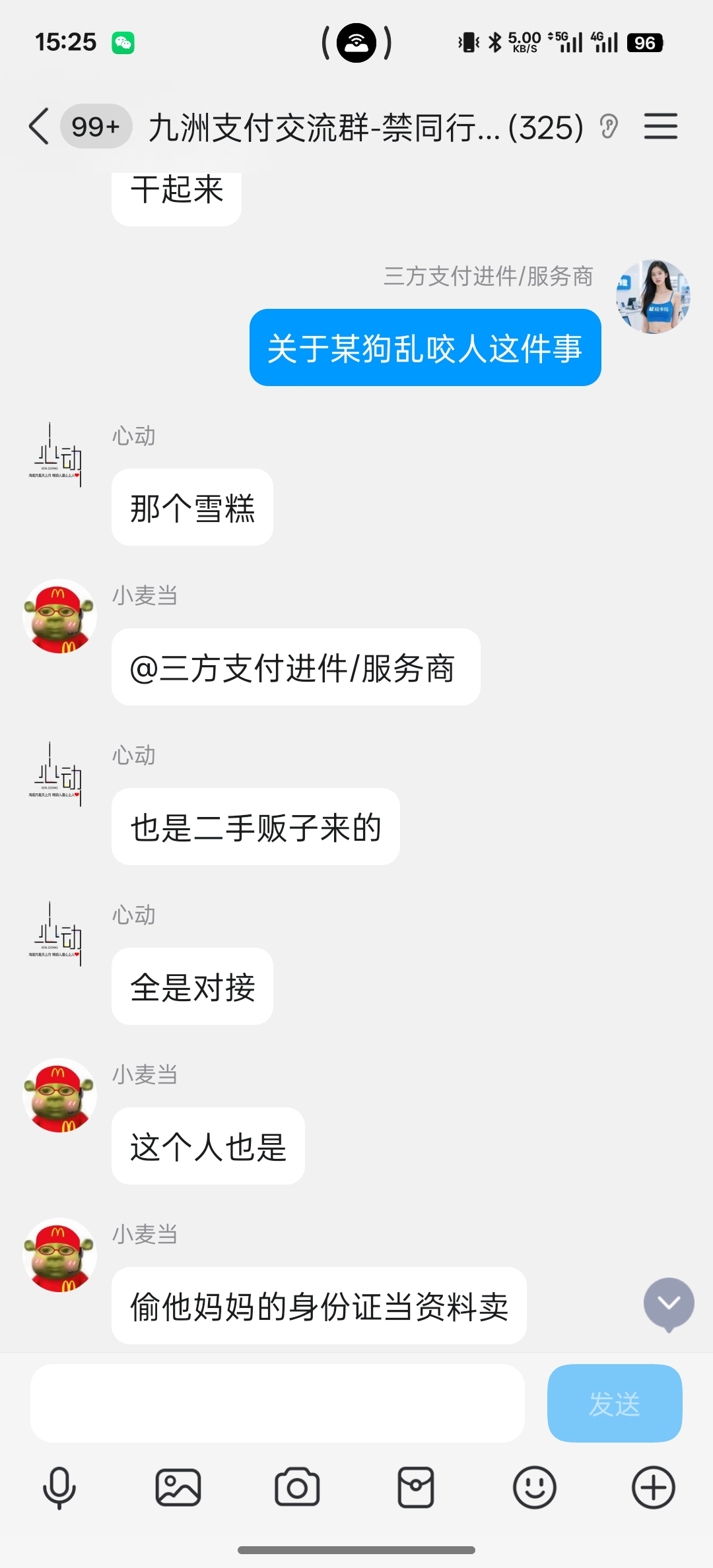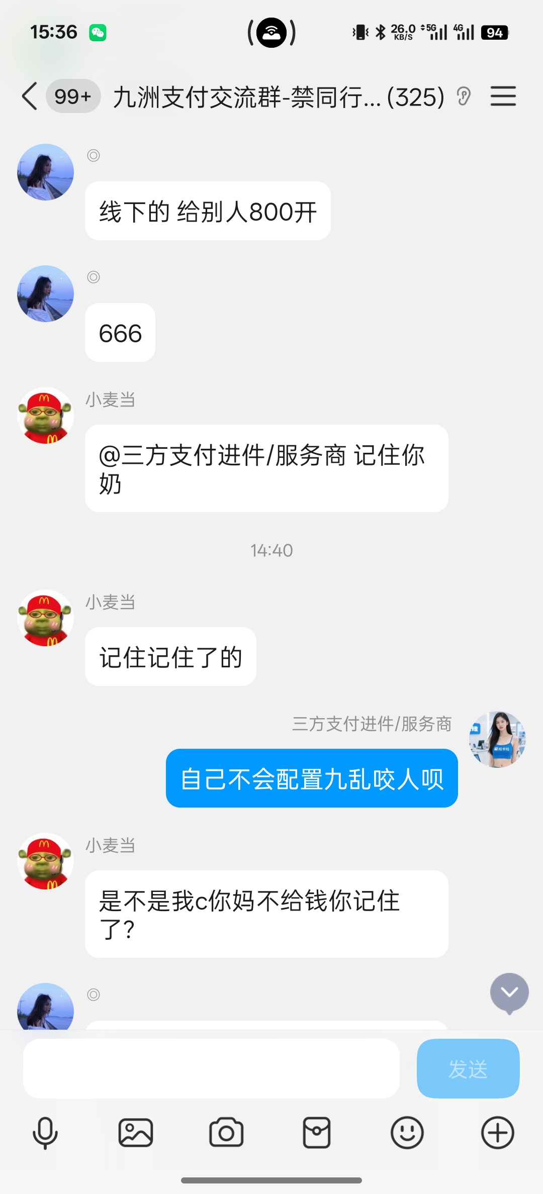 然后呢就是导致我被好几个群踢了,叫他进件号别乱搞,等我给他搞,他非要自以为是的乱搞,最后来跟我说我的东西不行,属实搞笑,其他的我也不想说啥了,自己看聊天记录吧