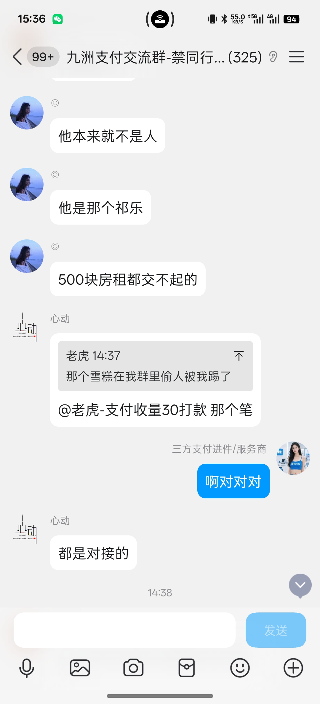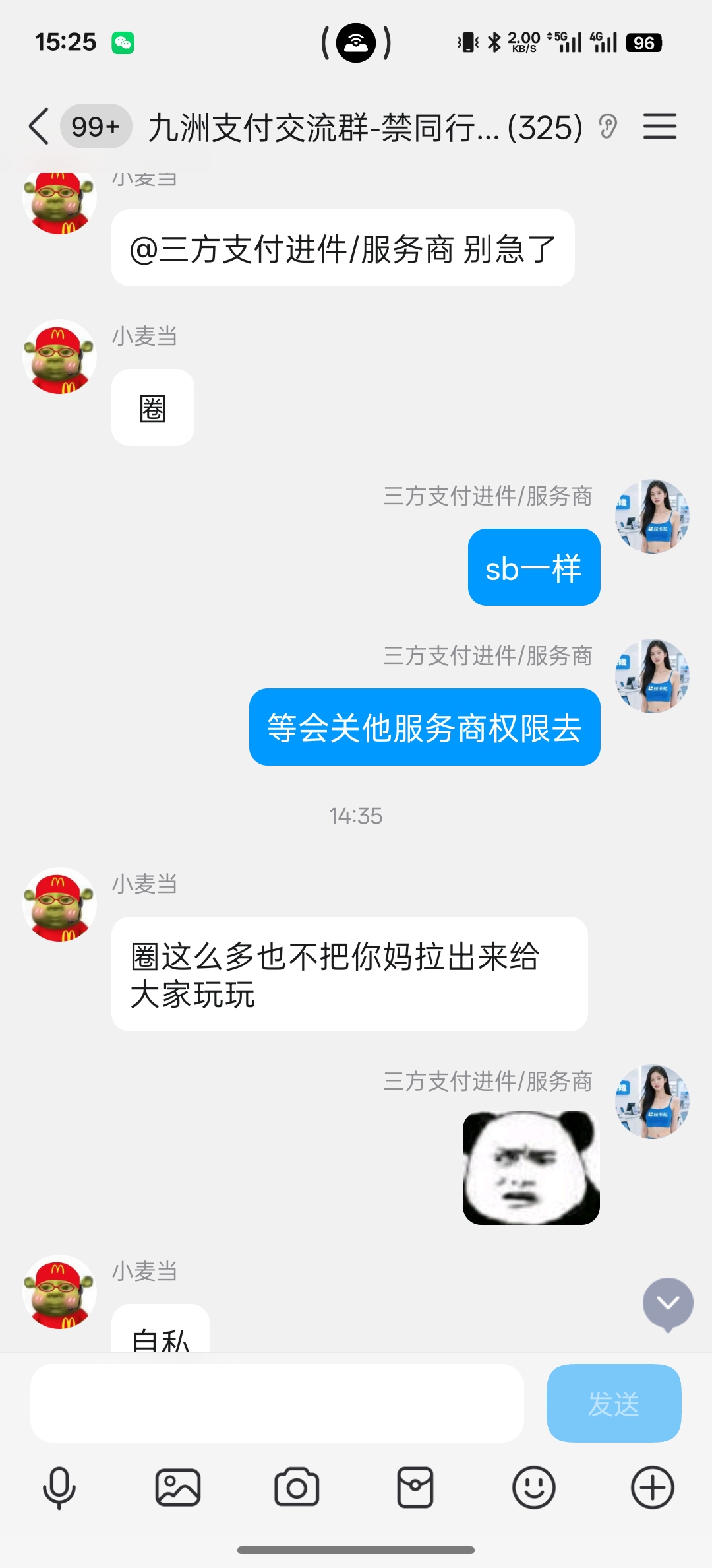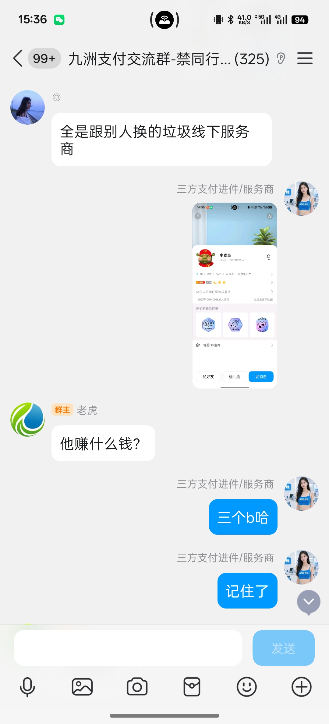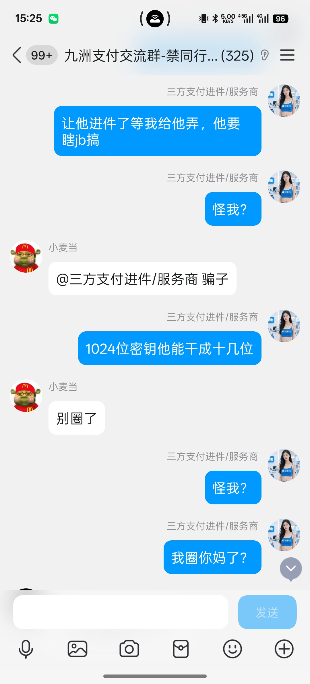 然后呢就是导致我被好几个群踢了,叫他进件号别乱搞,等我给他搞,他非要自以为是的乱搞,最后来跟我说我的东西不行,属实搞笑,其他的我也不想说啥了,自己看聊天记录吧